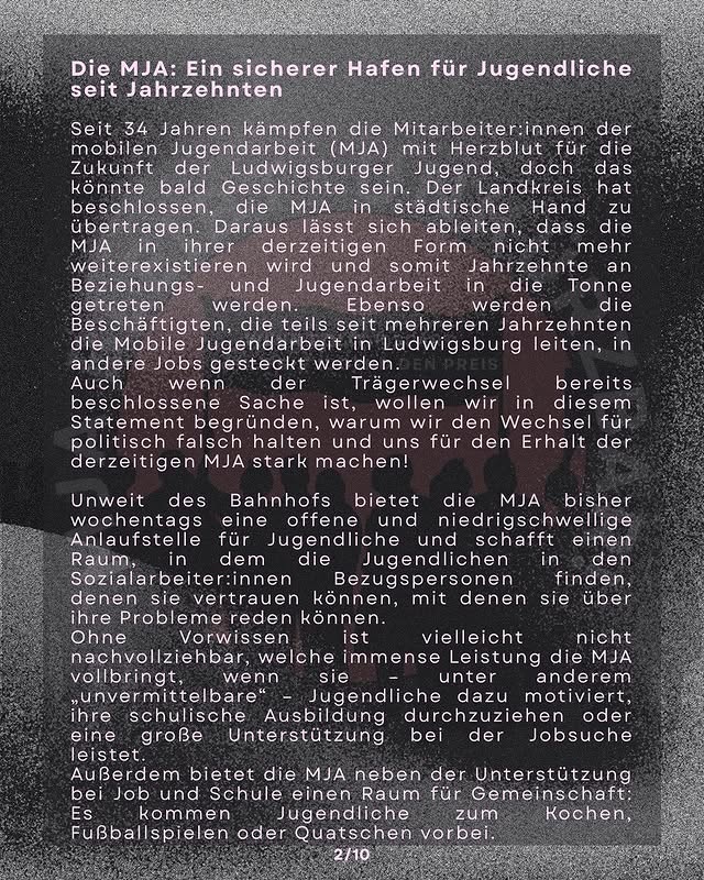 Am 13.12. auf nach Ludwigsburg zur Demo gegen die Schließung der Mobilen Jugendarbeit in ihrer bisherigen Form!